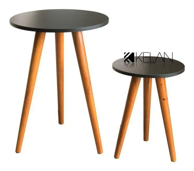 Mesa De Canto Redonda Preta 2 Mesas Pe Palito Madeira Kelan Mesa De Canto Lateral Magazine Luiza