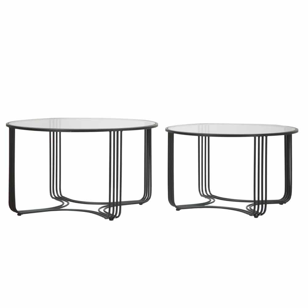 Par De 2 Mesitas Bajas De Diseno Redondo En Hierro Y Vidrio