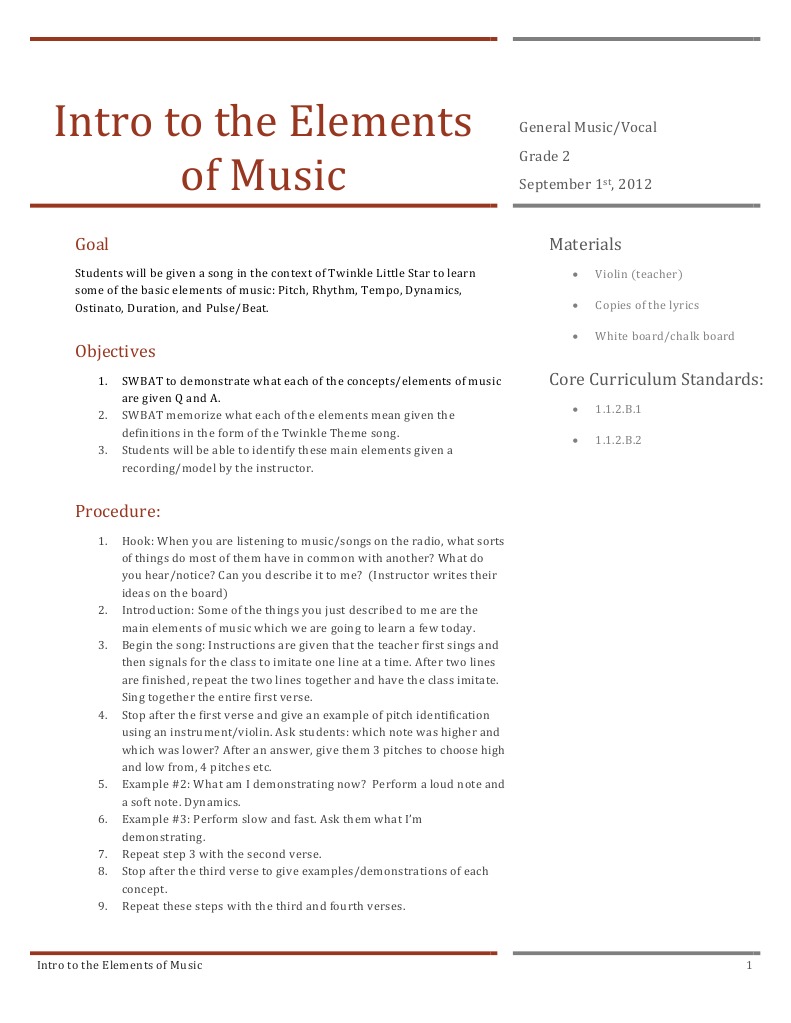 Intro To The Elements Of Music Materials Rhythm Song Structure