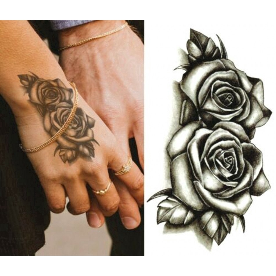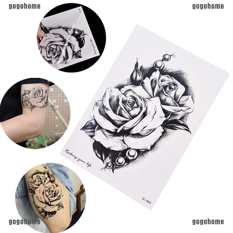 1pc Stiker Tato Temporer Anti Air Gambar Bunga Mawar Warna Hitam Shopee Indonesia