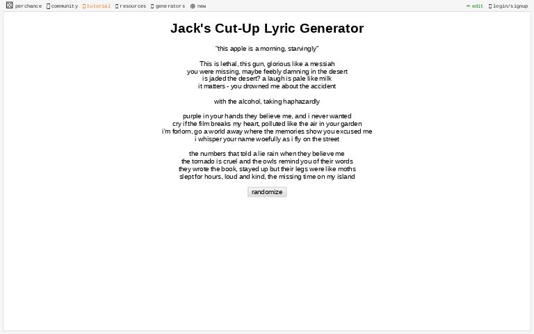 Jack S Cut Up Lyric Generator Perchance Org