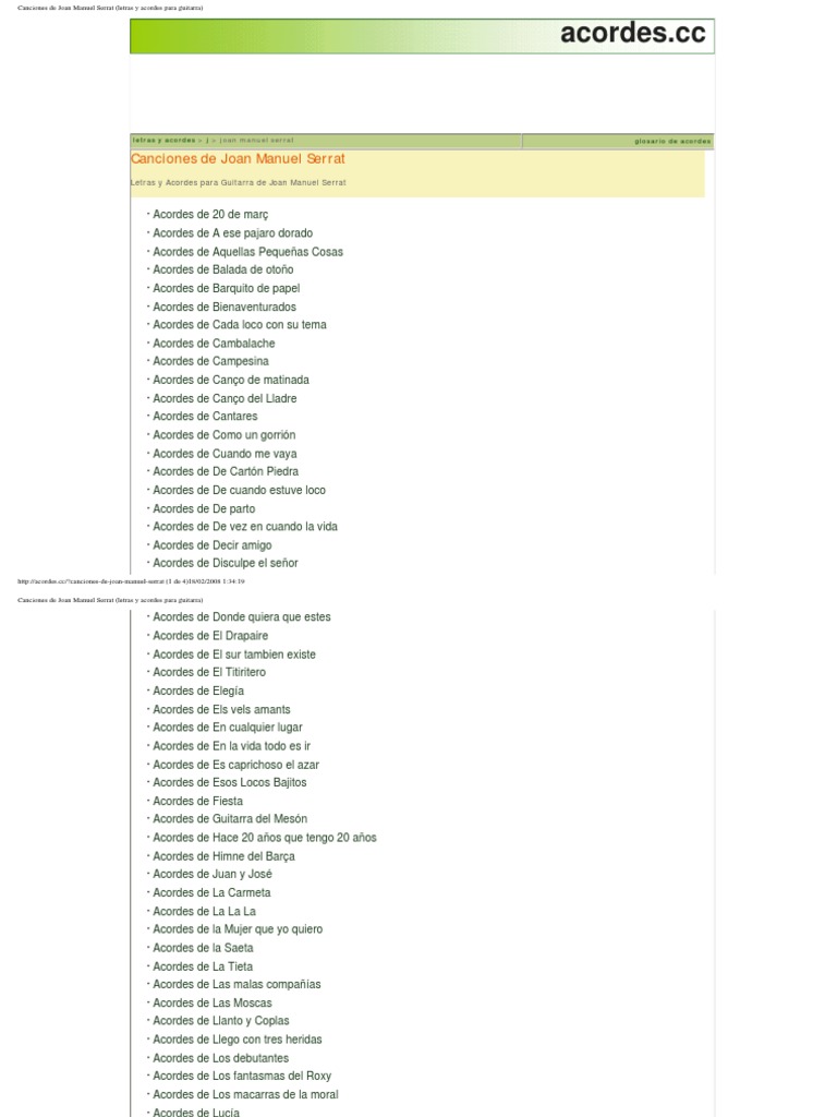 Canciones De Joan Manuel Serrat Letras Y Acordes Para Guitarra Pdf Entretenimiento General